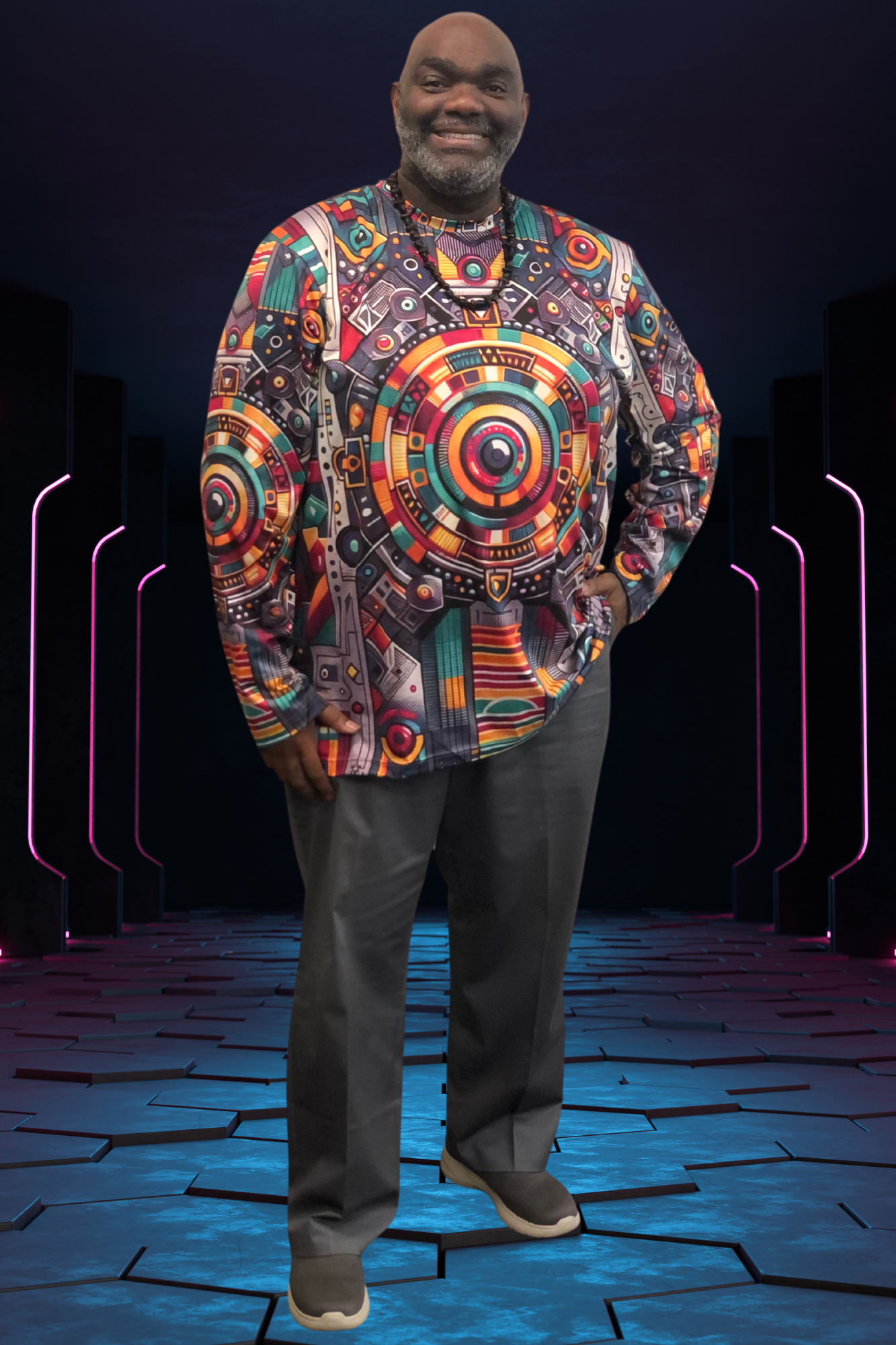 AFROFUTURISTIC KENTE 'COSMIC SANKOFA PORTAL' | Adult Men's Long Sleeve Shirt | BLACK HISTORY 365 COLLECTION