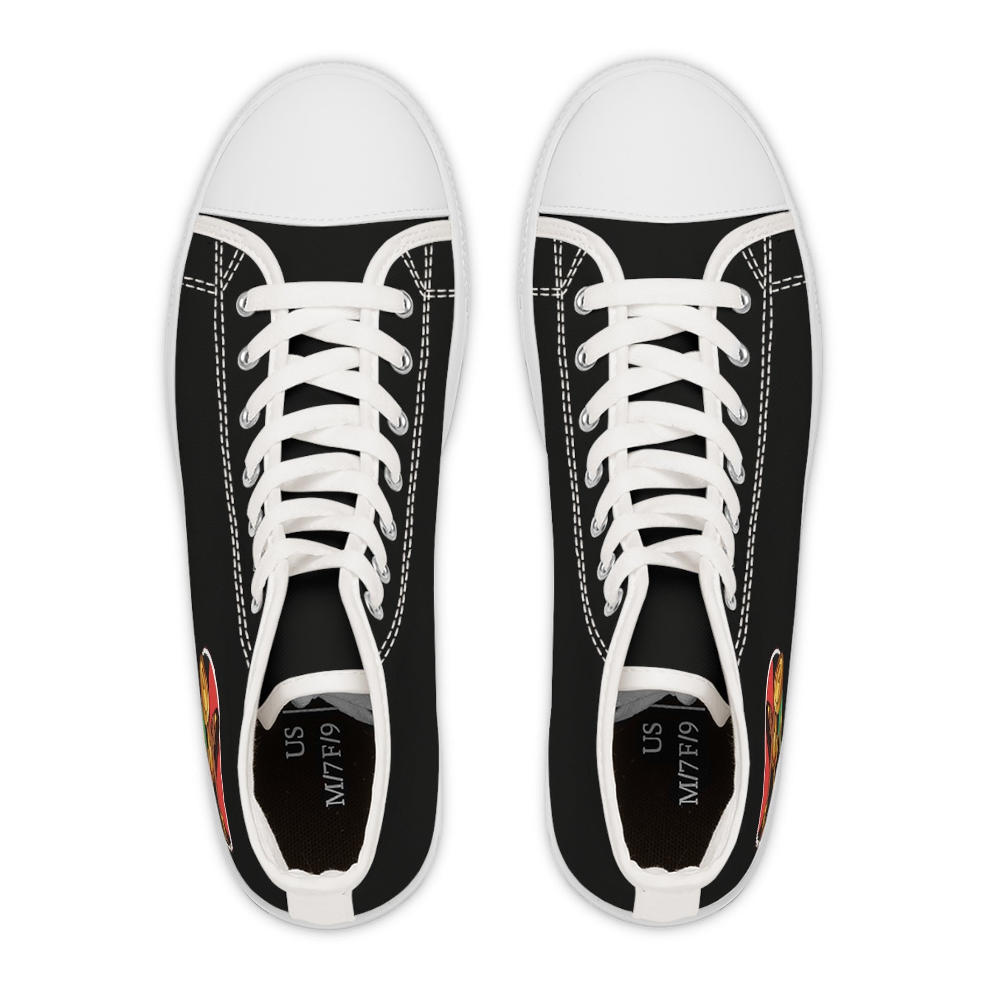 I created these sneakers from my logo with the strong, independent black woman in mind. The Badass Warrior Woman is a woman who is confident, powerful, and beautiful. She is a woman who knows what she wants and isn't afraid to go after it. These high-top sneakers are both stylish and comfortable. Perfect for any occasion, whether you're running errands or going out on the town.