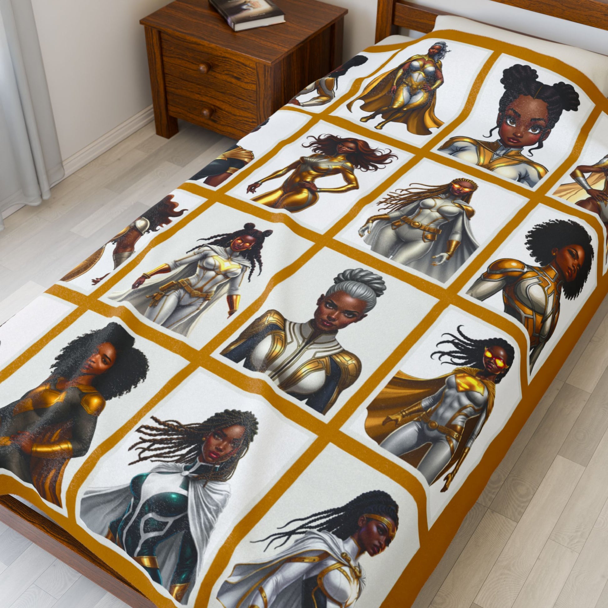GOLD SUPERHEROES Reading Blanket | Lux Velveteen Throw for Bookish Gifts & Black Women Empowerment
