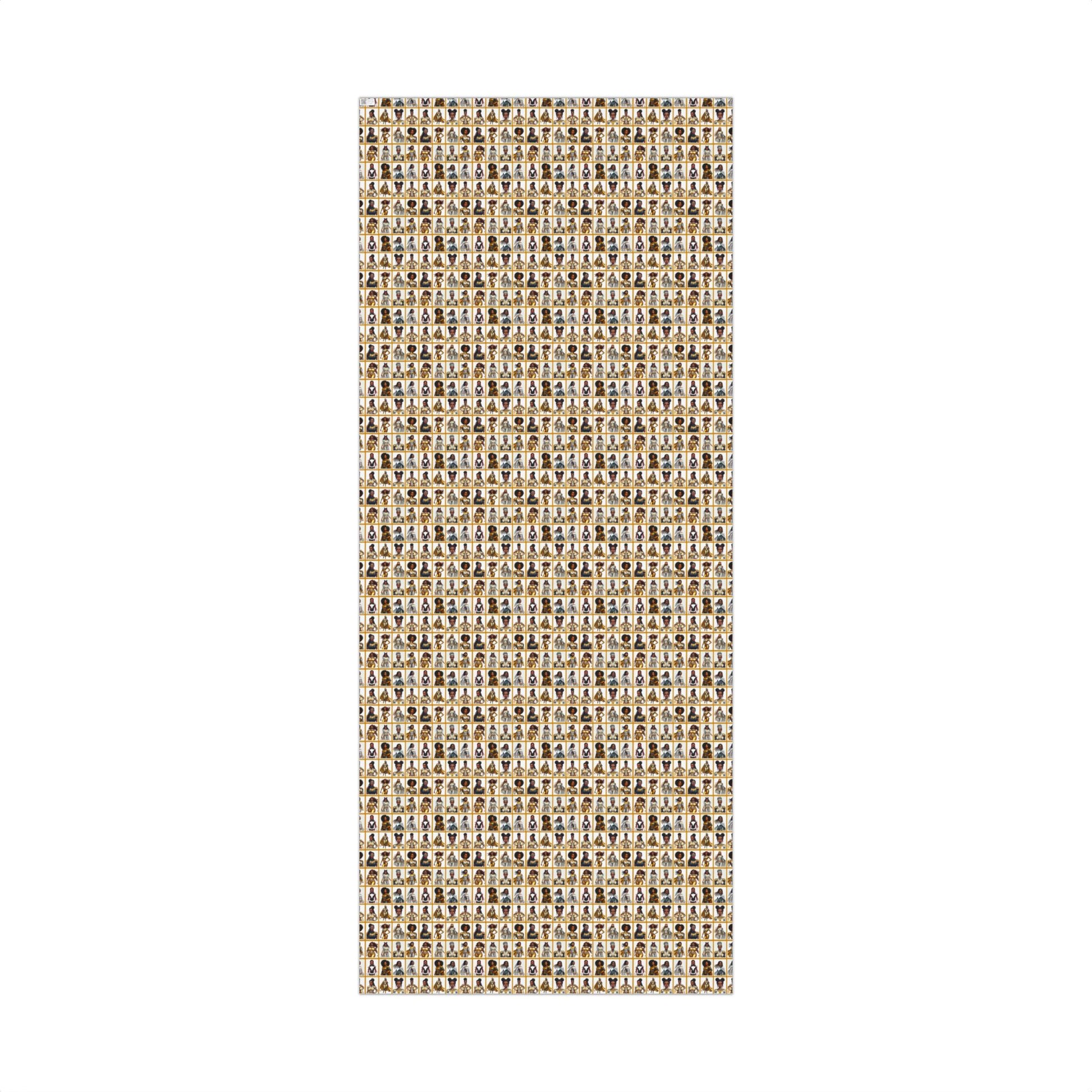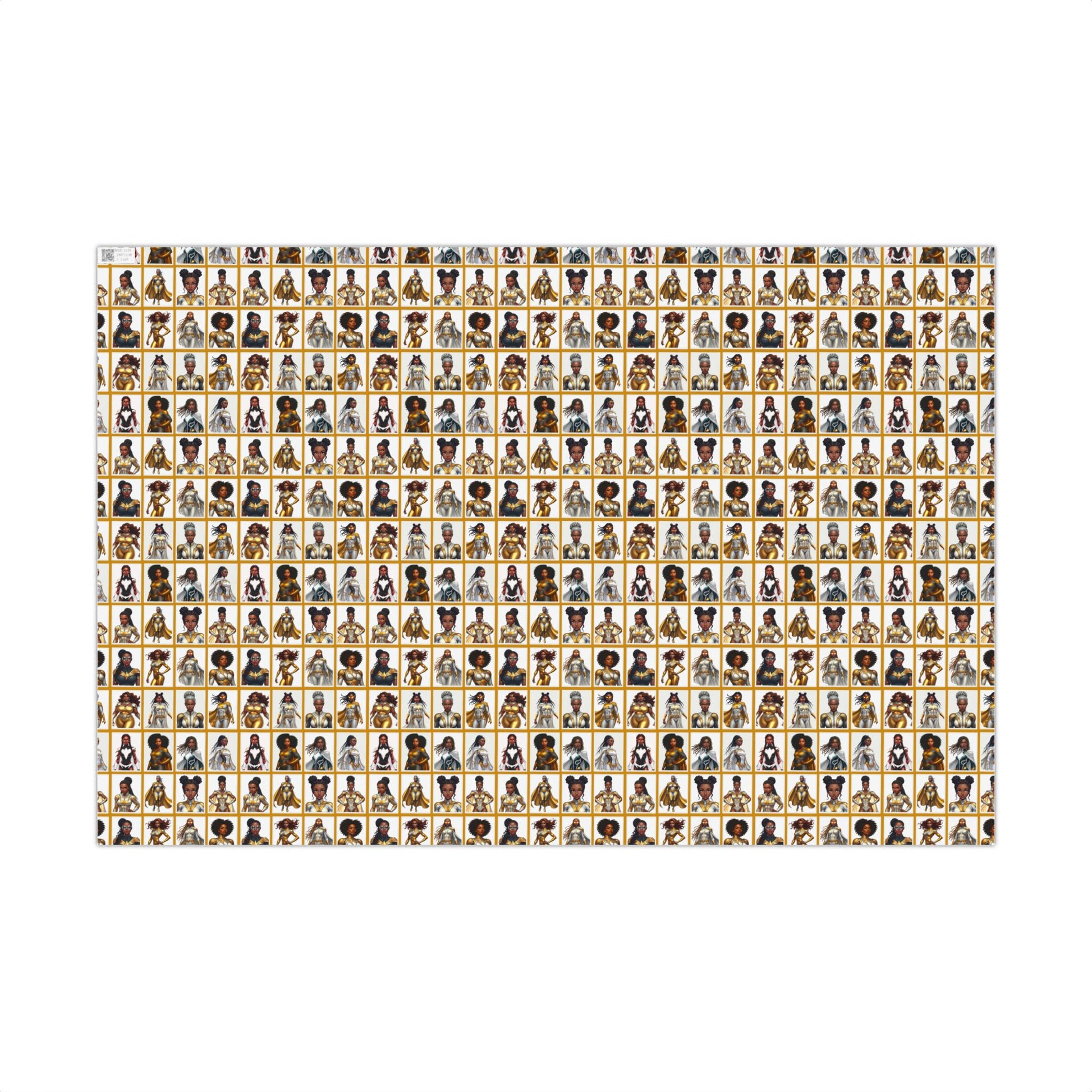 The I AM A SUPERHERO (GOLD) wrapping paper celebrates 16 radiant Black women superheroes, rendered in luminous gold and white tones that shimmer with confidence and style.