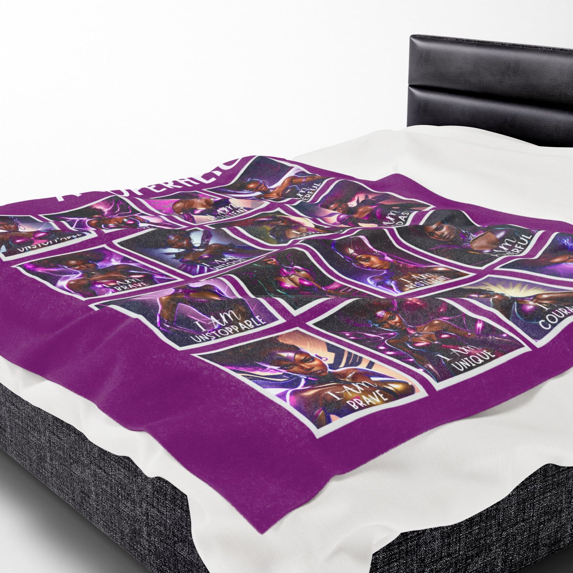 Curl up with your favorite superheroes and be empowered! This plush velveteen blanket features 16 Badass Black women superheroes along with powerful affirmations to inspire your inner hero. Whether you need to feel fierce, unstoppable, or resilient, these badass super sheroes have your back. Constructed of soft yet durable polyester, this blanket will keep you cozy while reminding you of your own strength, courage, and superpowers.