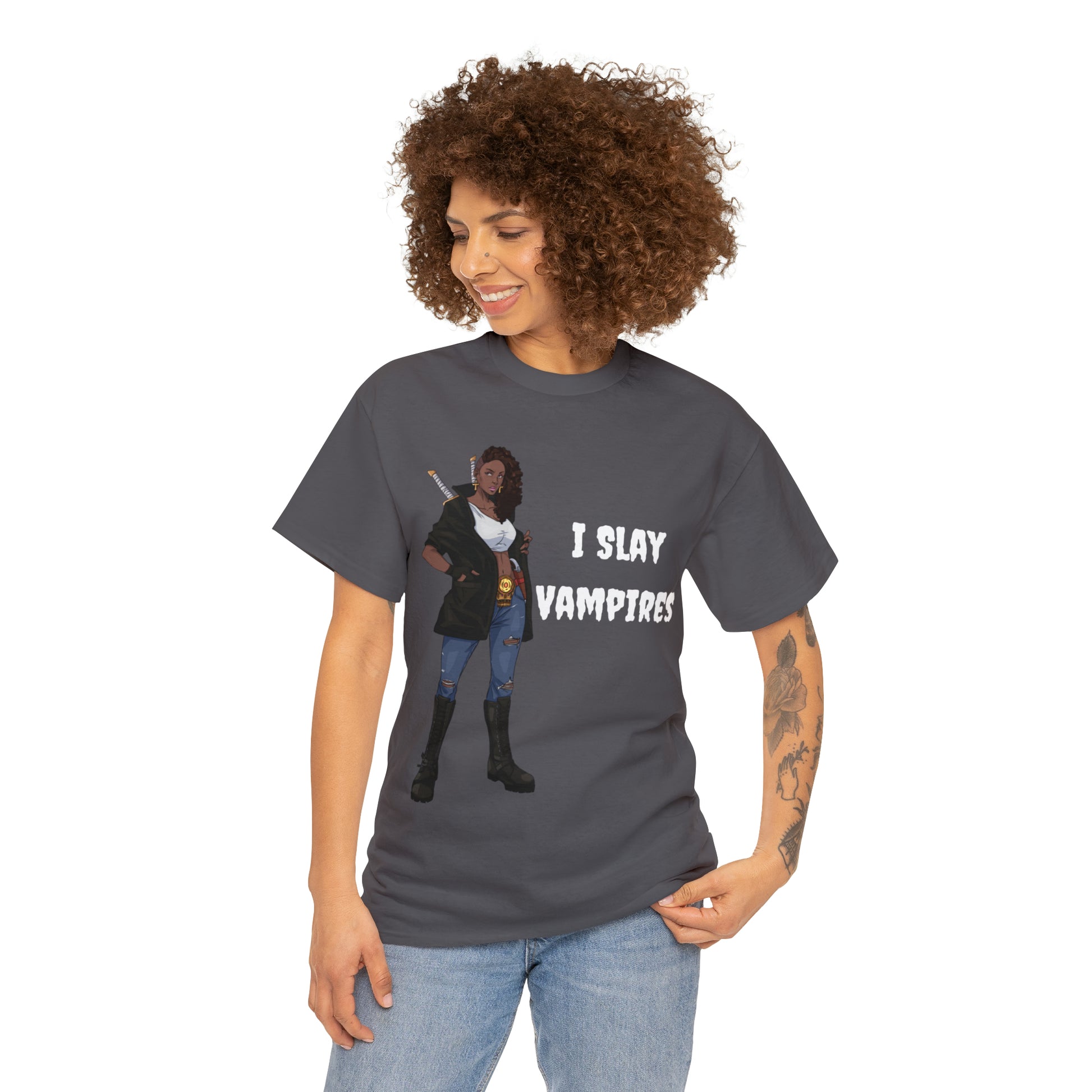 I Slay Vampires | Adult Unisex Heavy Cotton Tee | African American T-Shirt